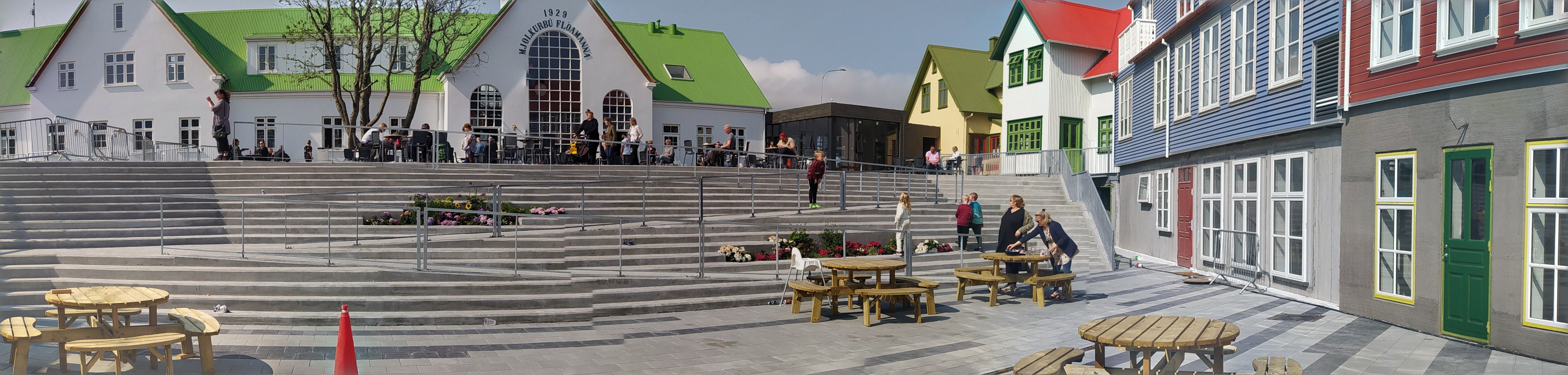 Bei der neuen Mitte in Selfoss war ich ja skeptisch. Die Idee, Häuser nach historischen Vorbildern neu aufzubauen, fand ich ja eigentlich ganz gut. Das kenne ich von der neuen Altstadt in Frankfurt. Aber dass hier Häuser nachgebaut werden sollten, die irgendwo ganz woanders auf Island gestanden haben, erschien mir dann doch eher suspekt. Jetzt wurden der erste Teil eingeweiht, und ich muss sagen: Es ist wirklich schön geworden. Viele unterschiedliche Restaurants, ein paar Läden, Platz, um draußen zu sitzen, nett, bunte, historisch wirkende Häuser, ... Und es war wirklich viel los. Auch wir haben dort draußen gesessen und eine Skyr-Schale gegessen. Echt schön!