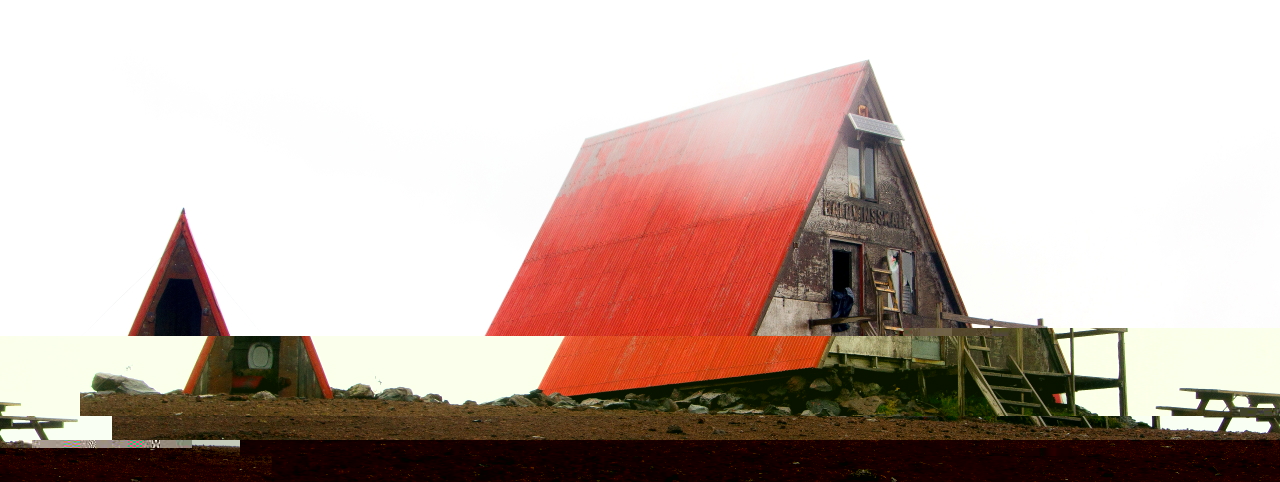 Als ich vor rund 30 Jahren das erste Mal zur Baldvinsskáli kam, habe ich sie nur gefunden, weil irgendwann ein rotes Rechteck durch den Nebel schimmerte. Wenn wir sie jetzt abtragen, werden vermutlich die meisten Wanderer an der neuen Hütte mit ihrem eleganten Tarnanstrich bei typischem Wetter einfach vorbeilaufen. :geek: