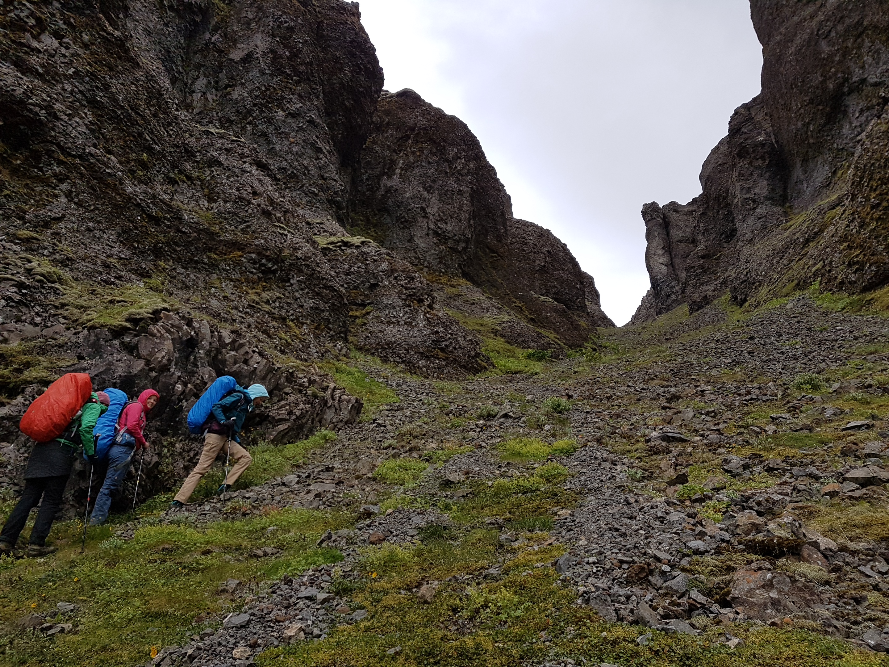 Am 2. Graenalon Wandertag vormittags haben wir die Djupa gefurtet. Am 3. Graenalon Wandertag sind wir die Kette hochgeklettert und durch die Schlucht