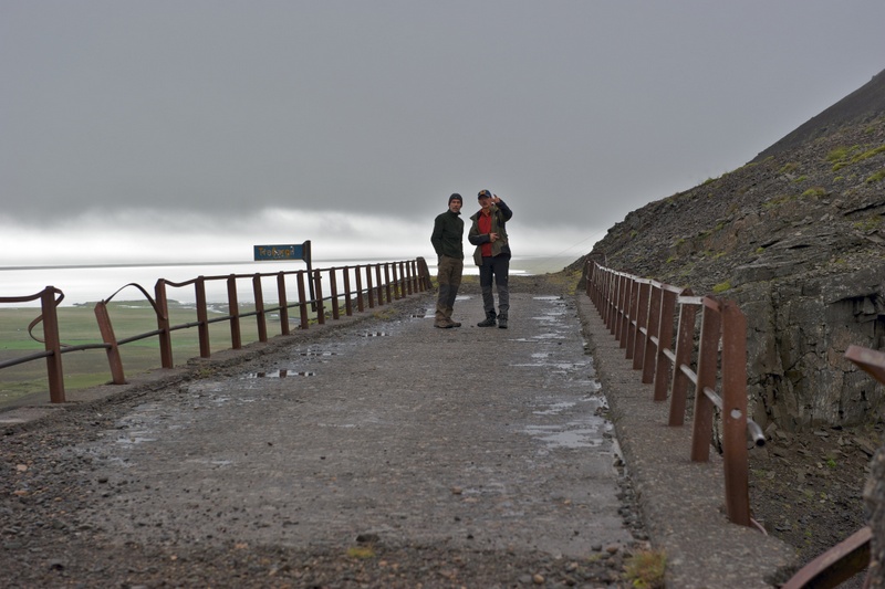 In 2010 bin ich von Süden kommend die ersten paar Kilometer hineingefahren, habe dann aber wegen Zeitmangels (Fähre ging am übernächsten Tag) und schlechten Wetters (waren sehr schnell komplett in den Wolken drin) abgebrochen. Die Piste scheint nicht mehr gewartet zu werden, da gleich am Anfang, noch in Sichtweite der Ringstraße, die erste Brücke zusammengebrochen ist, aber eindeutige Fahrspuren rechts davon über eine Furt gehen und wieder auf die Piste stoßen. Wenig später kommt eine ziemlich schöne, wenn auch alte Bogenbrücke aus Stahlbeton, die über einen Wasserfall führt (ganz schön spektakulär !) und so aussieht, als ob sie meinen Unimog tragen würde, auch wenn an der einen oder anderen Stelle Armiereisen aus dem Beton gucken (hier bin ich nicht mehr weitergefahren). Im weiteren Verlauf der Piste, die wir dann ca. 2 km weiter zu Fuß erkundet haben, zeigten sich an Stellen, wo die Piste Bäche überquert, immer wieder Böschungsabrisse, die mit einem Unimog aber wahrscheinlich fahrbar sind bzw. die man mit Spaten und Schaufel ausbessern könnte.