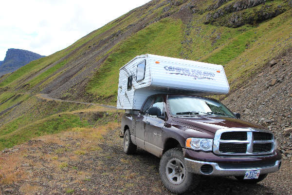 an dieser Stelle möchte ich auf eine Gefahrenstelle auf einer für 4x4-Touristen sehr beliebten Strecke hinweisen, die uns leider zum Verhängnis geworden ist. Westlich von Thingeyri geht eine Schotterpiste um die Halbinsel Slettanes bis Lokinhamrar (und weiter unterhalb der berüchtigten Felsüberhänge direkt am Meer, aber dieses Stück ist z.Z. gesperrt, denn "the road is totally ruined", wie uns gesagt wurde). Hinter dem Gehöft Hraun steht ein Warnschild, dass die Weiterfahrt nur für 4x4 geeignet ist. So weit so gut, wir hatten einen 4x4 Camper (s. erste Bilder) und keine Veranlassung zur Sorge, zumal auf der Road Conditions Website (http://www.road.is/travel-info/road-con ... stfj1.html) diese Strecke zwar mit "4x4", ansonsten aber als "Easily passable" gekennzeichnet war (grüne Linie). Auch Nachfragen im "i" vor Ort ergaben keine Gegenanzeige (wir haben denen unser Gefährt auch gezeigt).