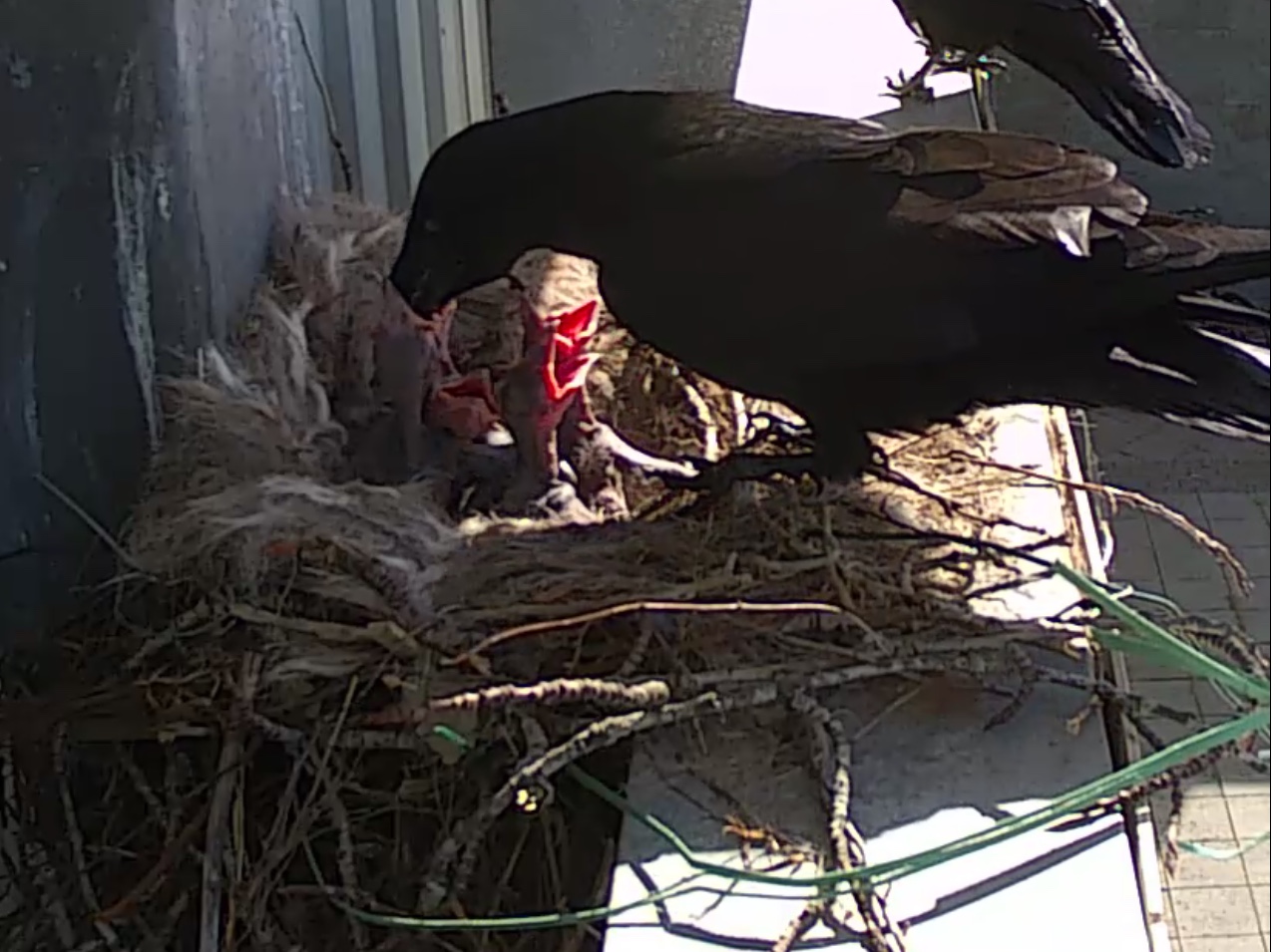 Ich zittere so um den kleinen Nachzügler, der immer noch hungrig ist. Alles Gute, kleiner Rabe!
