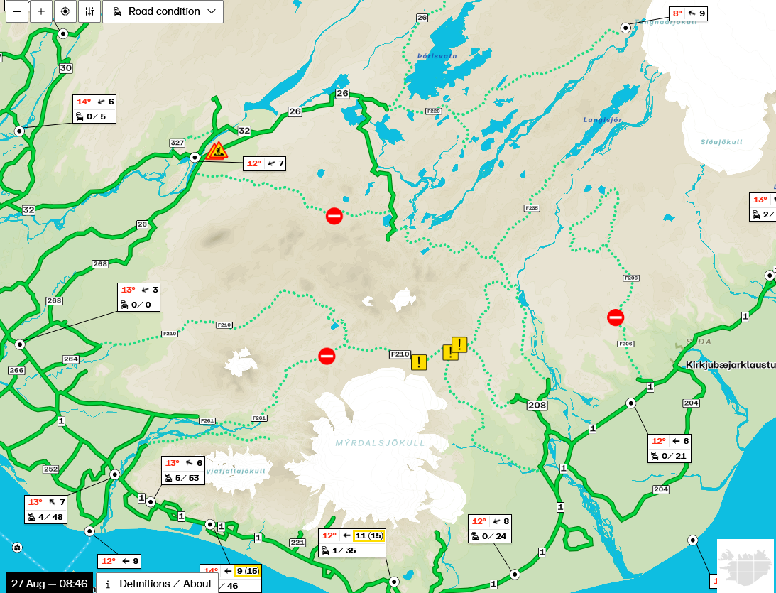 Das war wirklich zeitlich sehr begrenzt. Wir waren heute in landmannalaugar und sind problemlos die F208 nach Süden rausgefahren (im Hilux zusammen mit einem duster).Auch die f225 ist wieder offen.