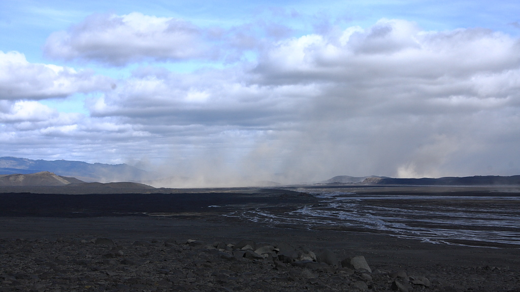 Die andere Variante geht weit östlicher von der Askja aus kommend, gerade aus durch die Sander, auf den Urdahals zu.