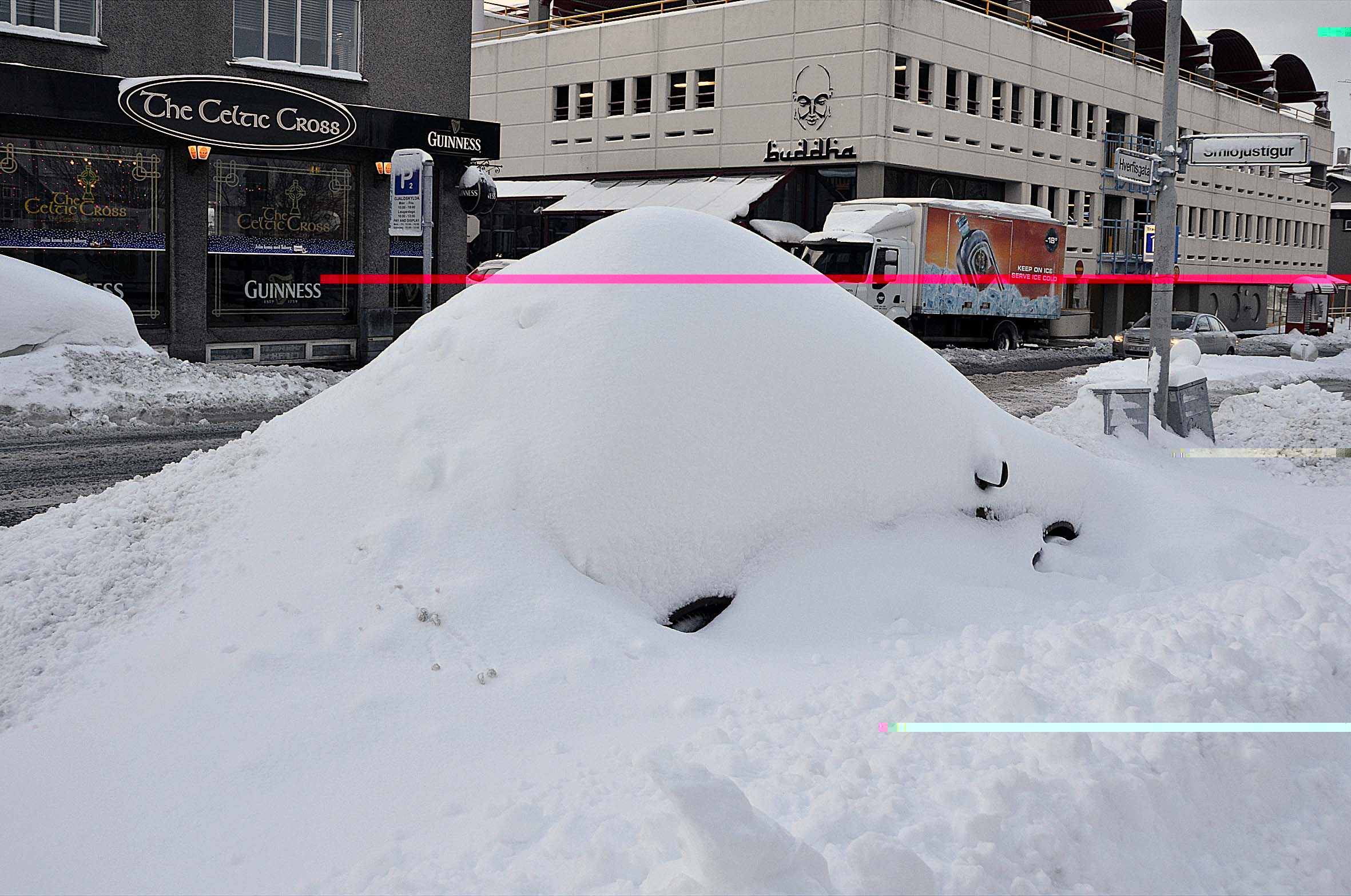 Wir waren von Dienstag bis Sonntag drüben in Reykjavik, bis Donnerstag war es schön kalt und durch die Kälte fester Schnee und beste Bedingungen auf den Straßen und größtenteils auch für Fußgänger. Mit dem Einsetzen der wärmeren Temperaturen in der Nacht auf Freitag und dem dazu kommenden Regen am Freitagmorgen wurden aus den guten Zuständen allerdings katastophale!