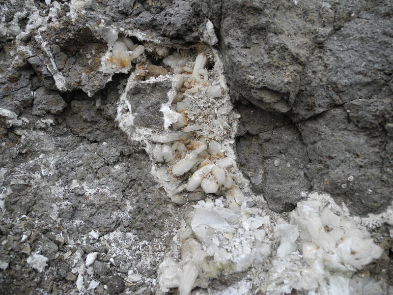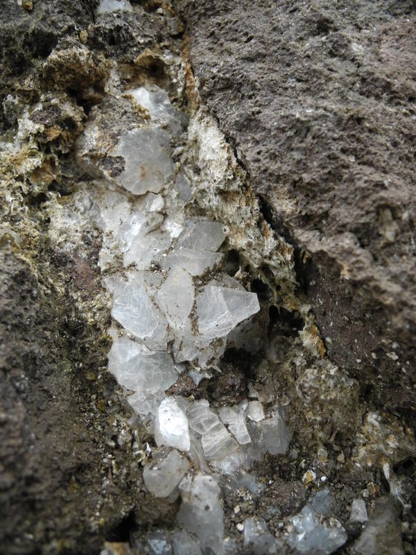 Ein paar Kristalle in situ an einem Straßeneinschnitt der Ringstraße bei Djúpivogur: