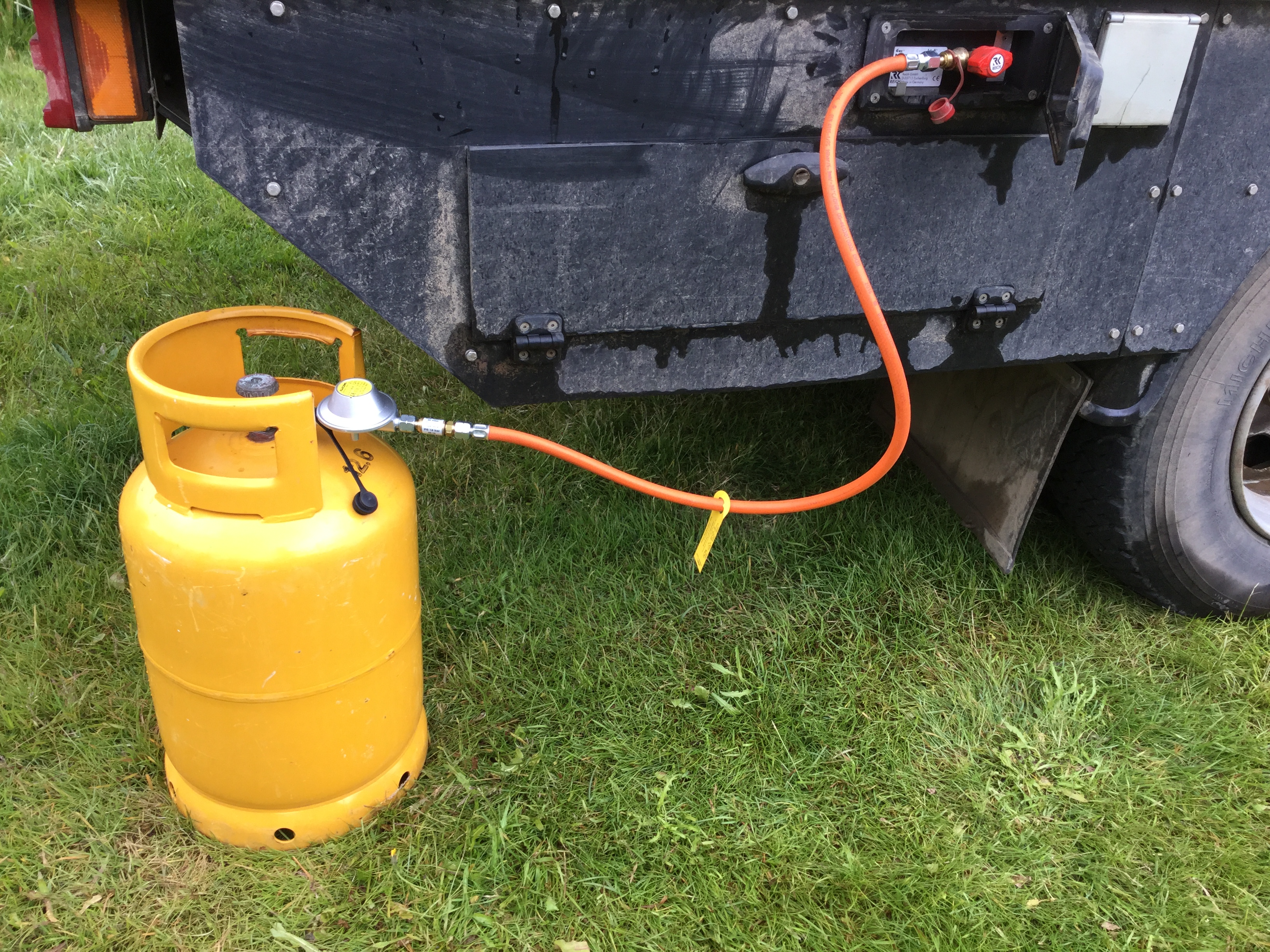 Den Adapter hatten wir schon mal in Deutschland gekauft, die o.g. Flasche dann in Island. Sie passt soar in den Eriba Troll, bei dem eigentlich nur 2 x 5 kg-Flaschen passen.