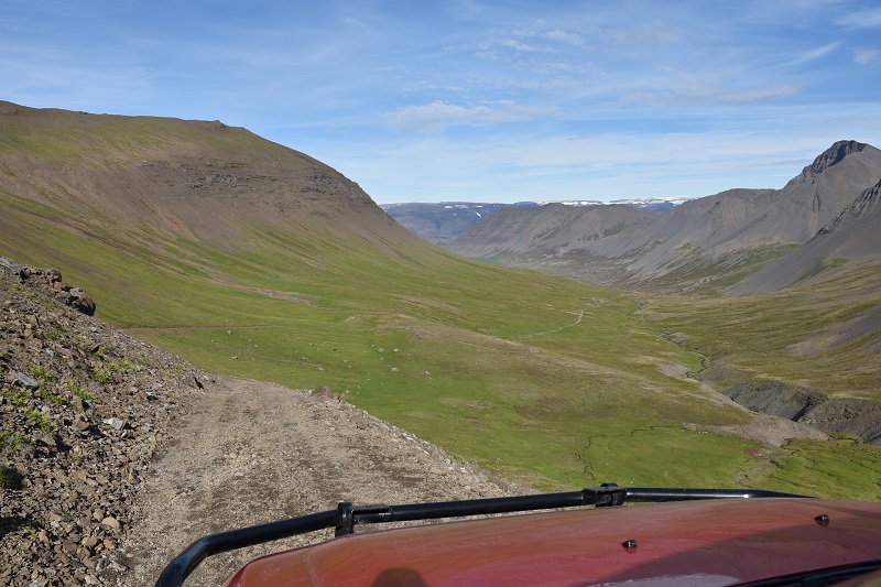 Für den Rückweg nach Þingeyri bietet sich der Weg durch das Fossdalur über den Kvennaskard an. Für den sollte man allerdings über Allrad und Untersetzung verfügen.