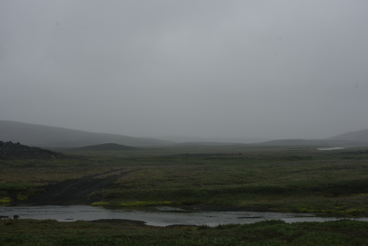 Auf der Smjörvatnsheiði gibt es auch ein símahúsið. Von diesen Häusern gibt es meines Wissens drei. Alle drei sind erneuert worden und das Rote Telefonhaus (meine Bezeichnung :mrgreen: offiziell: Austarahús) dient Landsbjörg Vopnafjörður als Trainingslager, welches ich letztes Jahr besucht habe. Mein Plan: von Hauksstaðir (an der 85) nach Grimsstaðir und von dort nach Kópasker. Vor Ort hatte ich den Einstieg dann nach Femri Hlið verlegt - schien mir einfacher. Ruthw setzte mich dort ab. Danke, nochmal Doris. :) Die bequeme Piste führte mich dann nach Aðalból. Einem aufgelassenen Hof. Die Gebäude dort sind privat und verschlossen. Klohaus war jedoch offen. Am nächsten Tag folgte ich dann der Piste gen Westen. Wetter war bescheiden, der Weg an sich ist einfach und gut zu gehen. Irgendwann tauchten auch die Telefonmasten auf. Am Roten Telefonhaus baute ich durchnässt und etwas grummelig mein Zelt auf. Wolken und Regen fanden es dort auch schön. Der nächste Tag brachte keine Besserung und ich hatte keinen Bock in die graue Wand zu gehen. Das Telefonhaus Haugur (auf ca. 720HM) wäre das Ziel gewesen. Nebel, Wolken und Regen hatte ich noch von 2017 genug, also bin ich den gleichen Weg zurück. Völlig durchnässt kam ich in Aðalból an, wo ich zwei Nächte blieb und den gleichen Weg zurück ging. Das einzige Hindernis ist evtl. die Selá. Auf dem Hinweg traf ich an der Selá zufällig die Bauern von Femri-Hlið, mit denen ich, nachdem mich Doris abgesetzt hatte, ein paar Worte gewechselt hatte und fuhren mich durch den Fluss. Nun auf dem Rückweg kam ich in den Genuss der Furt. Die Strömung war an dem Tag eher seicht. Die tiefste Stelle war ca. in der Mitte und ging mir etwas über die Knie/Mitte Oberschenkel (?). Das Schwierige an der Furt sind die runden mittelgroßen glitschigen Steine und kaum Zwischenräume. Mit den Füßen habe ich die Steine leicht zur Seite geruckelt, was gut ging. Die Sicht auf den Grund war gut. Es dauert halt. Ich bin neben der Fahrspur gegangen, die ist tiefer.