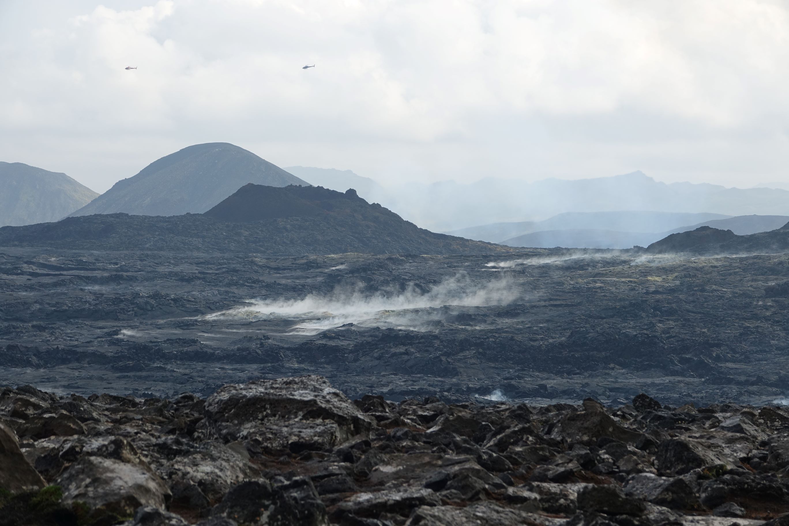 Als ich im August 2022 auf dem Weg A zum damaligen Ausbruch gewandert bin, hat man in den Lavafeldern vom Vorjahr noch vereinzelte kleine Rauchfahnen gesehen, aber nicht sehr spektakulär: Wenn der Ausbruch zu Ende ist, und man einen guten Überblick über das Gelände haben will, eignen sich meiner Meinung nach die Wege A und C besser als E. Sie führen höher hinauf und näher an die Lavafelder der vergangenen beiden Jahre. Insbesondere der hohe Krater von 2021 mit seinen bunten Farben ist beeindruckend.