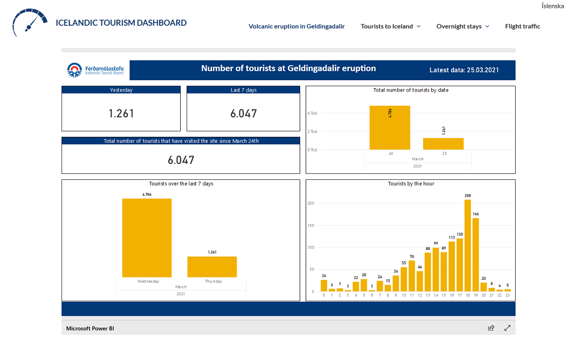 Das finde ich ja nun richtig witzig: Hier ist ein Dashboard, von dem sich die Bescucherzahlen an der Ausbruchsstelle ablesen lassen :) . Der Zähler dazu ist am Fußweg zur Ausbruchsstelle installiert: https://www.maelabordferdathjonustunnar ... dingadalir.