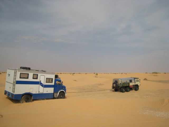 Natürlich stecken, die Wüstenfahrer heute nicht mehr im Sand, es gibt noch Sandbleche und vor allem die Schaufel !