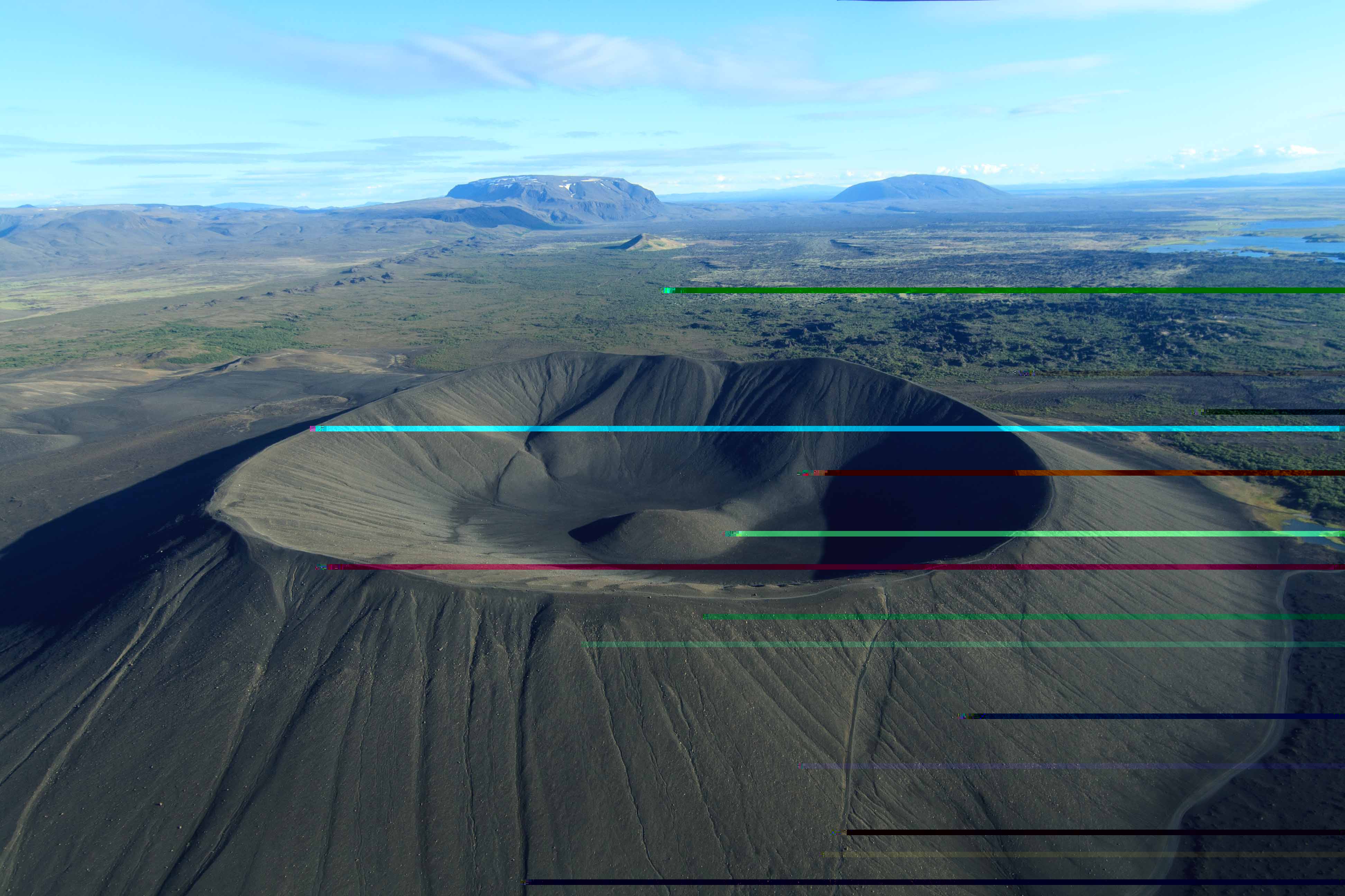 Dann fuhren wir zum Flugfeld des Myvatn, wo wir bereits für unseren Flug erwartet wurden. Er sollte 1h30 dauern, mit tollen Blicken auf den Myvatn, Askja, zum Kverkfjöll und auf dem Rückweg beim Herdubreid vorbei.