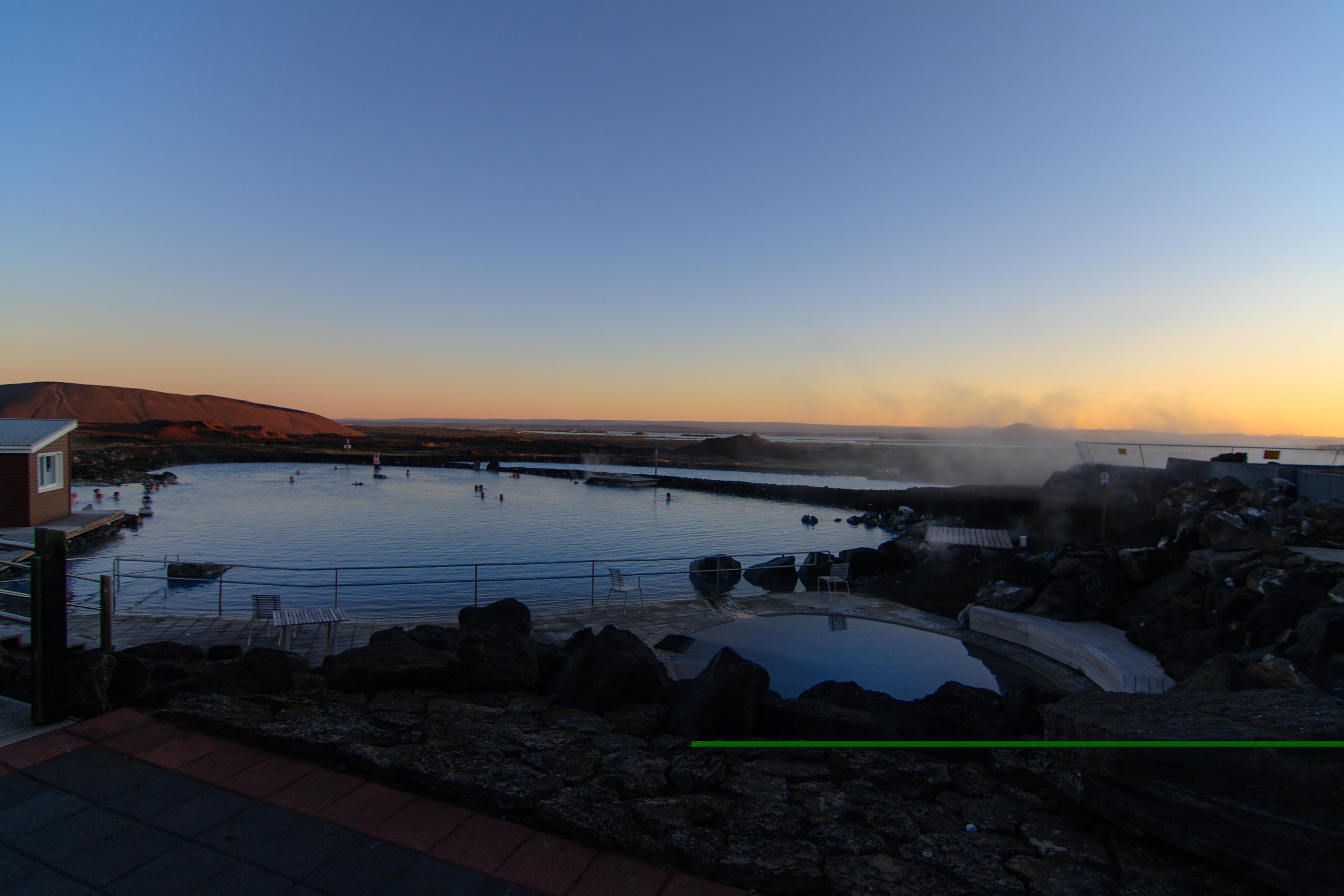 Da der nächste Tag wieder sehr anstrengend werden soll, besuchten wir am Abend zur Entspannung noch das Myvatn Nature Bath. Der Vorteil dieses Naturbades im Vergleich zur blauen Lagune ist die längere Öffnungszeit (bis Mitternacht?) und weniger Besucher, man hat also definitiv mehr Platz! Eine tolle Erfahrung, auch wenn wir nicht speziell zum baden nach Island fuhren, da gibt es wahrlich bessere Destinationen. Schön warm und entspannend.....