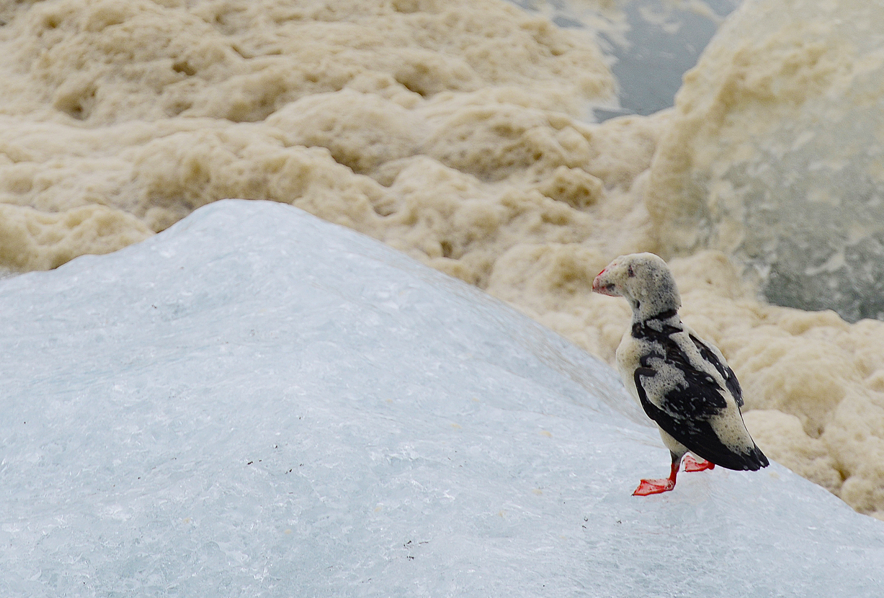 2013 wollte ein Puffin am Jökulsarlon unbedingt ein Schaumbad nehmen.