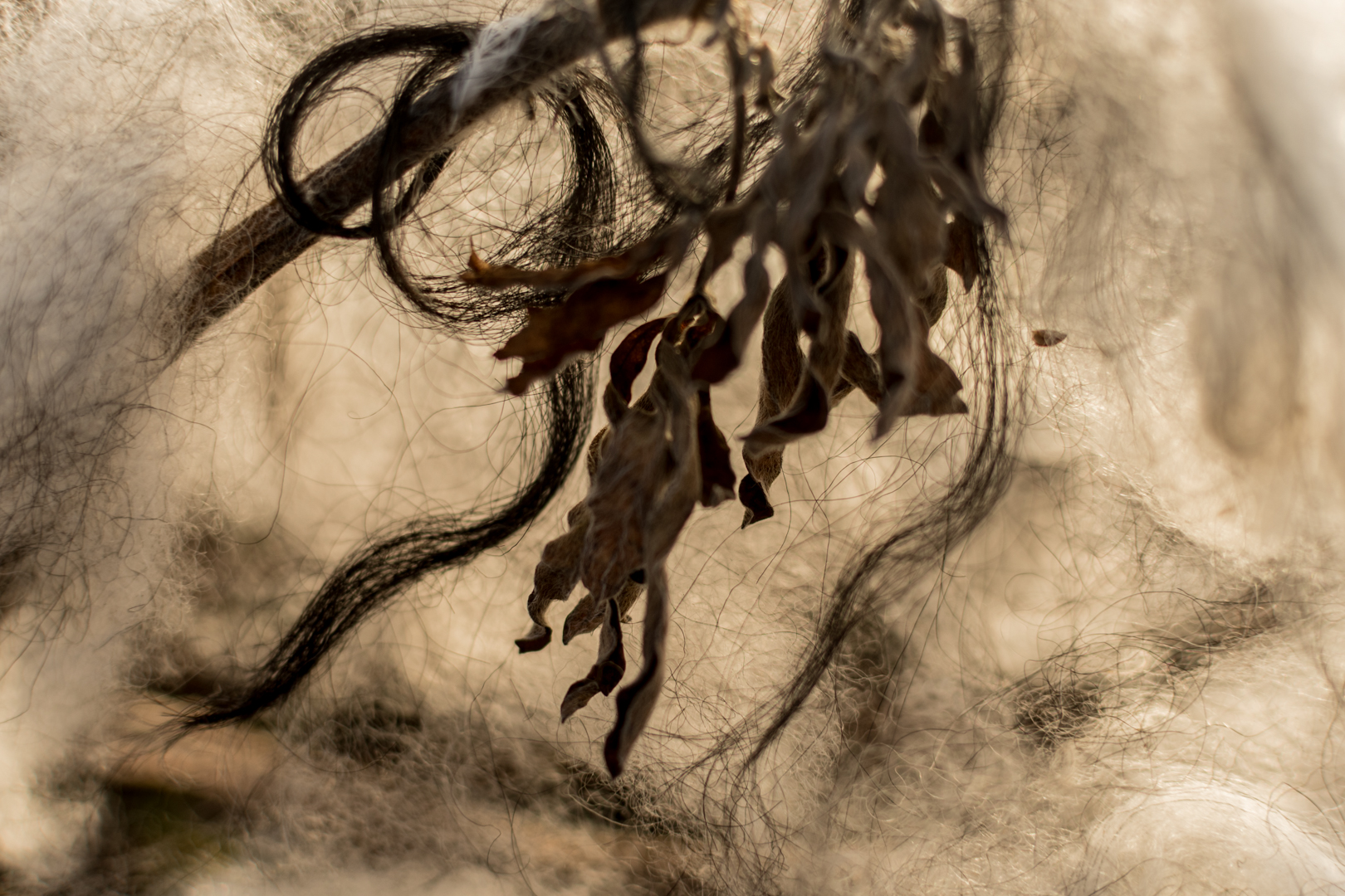 Marled hatte mich vor zwei Jahren (oder so) wegen einer Artist Residency im Textilmiðstöð in Blönduós angesprochen. Irgendwas-mit-Textil-Lanschaft-und-Fotografie. Die Idee hatten wir nur relativ grob umrissen und ließen es auf uns zukommen. Dank des Wetters und der tollen Atmosphäre im Haus konnte ich mich vollends auf die Arbeit konzentrieren. Aus dem Fundus vor Ort (diverse Stoffe) und der mitgebrachten Wolle, die aus der Gegend stammt und ich mir zuvor bestellt hatte und mit der ich schon hier zu Hause rumundnum probiert habe, sind neue Bilder/Motive/Ideen entstanden. Marled hat mir gezeigt, wie man Wolle mit natürlichen Farben färbt (Lackschildlaus, getrocknete Birkenblätter und Färberkrapp). Dabei habe ich þel und tog bei Färben nicht voneinander getrennt.