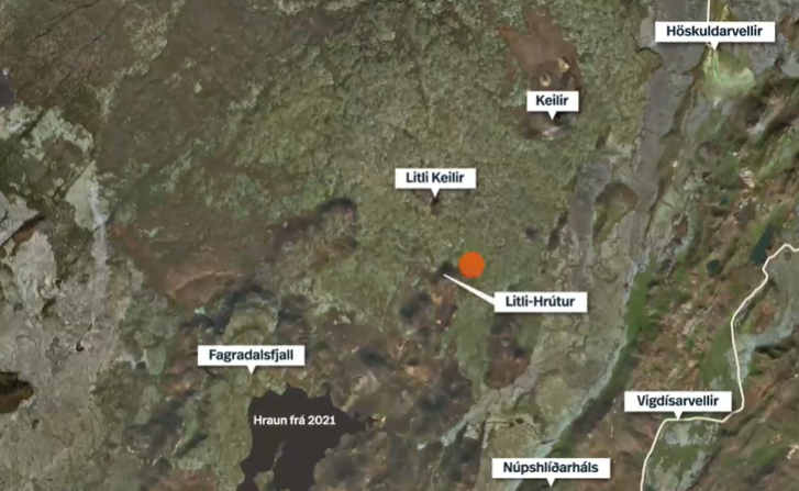 Die Ausbruchsstelle sehe ich auch dort: nordöstlich von Litli-Hrútur. Da offenbar alle Anfahrtswege (Pisten) gesperrt sind, sind es zu Fuss wahrscheinlich 3 Stunden Wegzeit, egal von welcher Strasse aus welcher Himmelsrichtung. Es liegt mitten drin. Also drei Stunden PRO WEG. Liegt also nicht mehr so nahe wie die letzten 'Touristen-Ausbrüche' am Fagradalsfjall.25u.de hat geschrieben: Mo 10. Jul 2023, 21:26 Ich füg Mal ein Bild aus einem der online verfügbaren Videos ein. Auch wenn es sehr verlockend ist, da sofort hinzufahren..