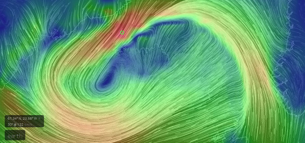 Speziell in Hveravellir scheint es heute Nacht mit Windgeschwindigkeiten von bis zu 30 m/s ungemütlich zu werden.