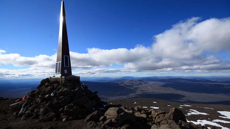 Wir hatten auch kein Eis auf dem Plateau aber auf dem Weg zum Gipfelaufbau war es ein hübscher Balanceakt über die zum Teil wackeligen, zum Teil bombenfesten Geröllbrocken mit ihren messerscharfen Kanten. Auf dem Gipfel war es angenehm warm und auch nur leicht windig. einige hatten noch nicht genug und umrundeten die Caldera, welche halb mit Eis, halb mit Wasser gefüllt; ein genialer Anblick.