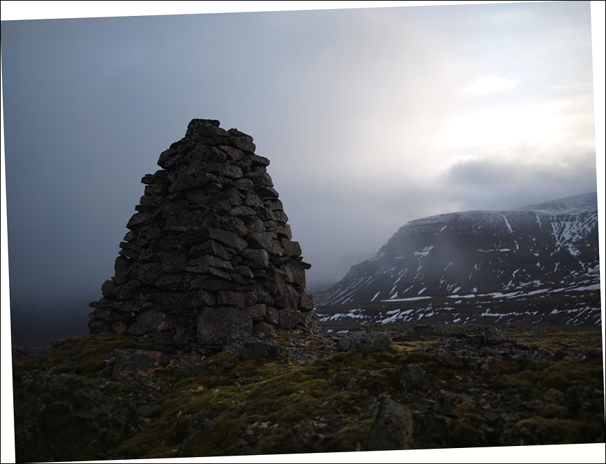 Es nieselt sehr leise als ich Mjóeyri verlasse, eigentlich so wenig das ich die Kapuze meiner Jacke nicht über'm Kopf ziehe. Der Rucksack, trotz nur 4 Tage an Proviand, fühlt sich schwer an. Ist er, mit den Inhalt eines halben Supermarkts, auch ! Doch ich geniesse die Stille am Fjord. Der salzige Geruch vom Meer in die Nase. Die Wellen schlagen so sanft auf die Ufer, alsob sie Angst haben überhaubt irgendwelchen geräusch zu machen.