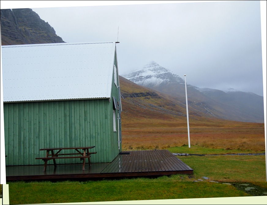 Als ich mich einquartiert habe, rufe ich das letzte mal beim Landsbjörg an und bedanke mir sehr herzlich für dessen "back-up" ! Für die letzte Etappe werde ich sicherheitshalbe die Eigentümer von Mjóeyri informieren. Mittwoch, 26 September 2012 >
