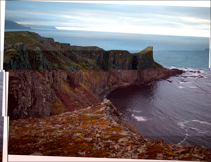 Nun ist schluss, ab hier, schier unendlich, nur noch das Meer ! Im Süden sehe ich der Gerpir noch immer in Wolken gehüllt. Das macht die freude auf den Barðneshorn zu stehen, anstatt Islands östlichste stückchen Festland, noch grösser. Auf dem Bauch liegend schaue ich nochmal hinunter zur diesen "matchstick" das sich Leuchtturm nennt. Etwas zurück am nordlichen Küstenstreifen sehe ich auch "Gerpir", die Trolle...oder doch nur eine Felsnadel im Meer ?