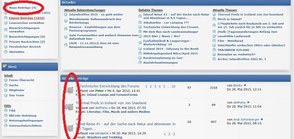 jáArgish hat geschrieben:Ich glaube Inselmensch hat mal davon gesprochen. Bei mir erscheint immer: Neue Beiträge (x) obwohl ich alle Beiträge gelesen habe. Wenn ich auf "Neue Beiträge" klicke kommt direkt die Liste mit den Beiträgen und auch wenn ich alle gelesen habe erscheint immer noch die Zahl in Klammern.