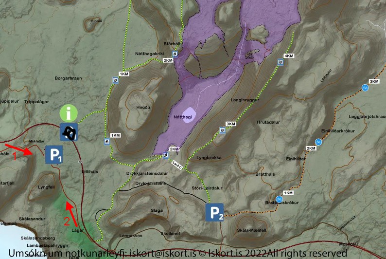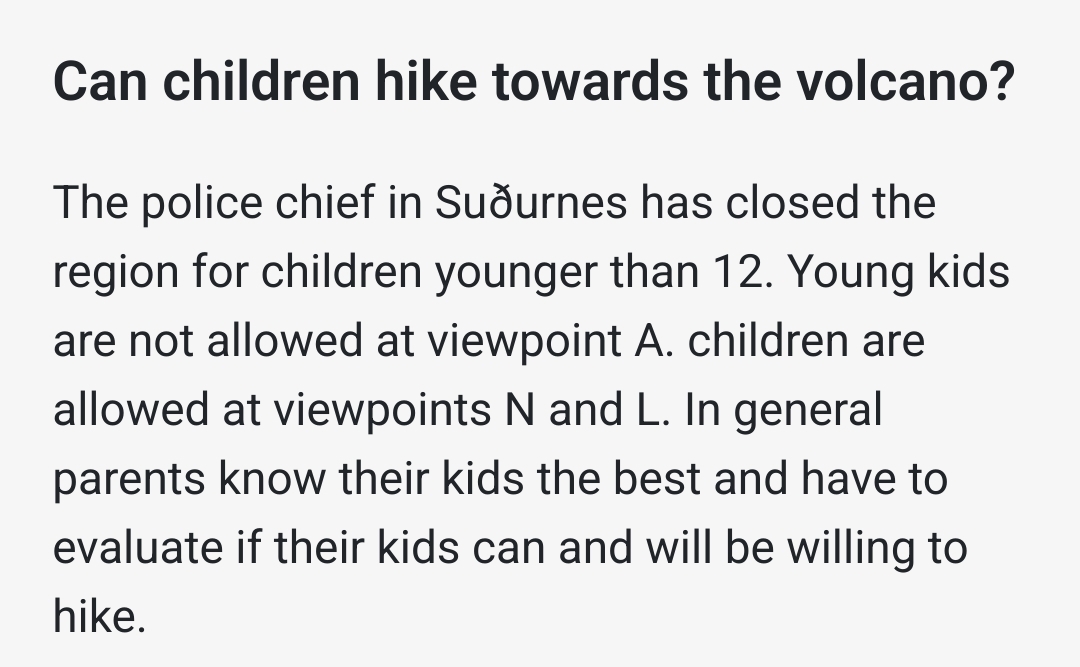 Ich habe gerade einen Artikel gefunden, in dem steht, dass Leuten mit kleinen Kindern der Weg in den Nátthagi, also das Lava Feld vom letzten Jahr, ganz offiziell "angeboten" wird.