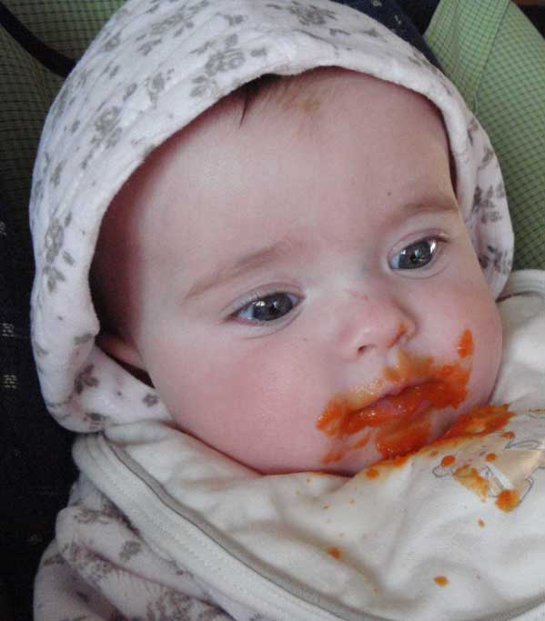 Zum Thema "Karottenbrei" könnten wir auch ein nettes Foto beisteuern, wenn mensch bei den wichtigen Augenblicken des Lebens eine entsprechenden Apparat griffbereit hätte