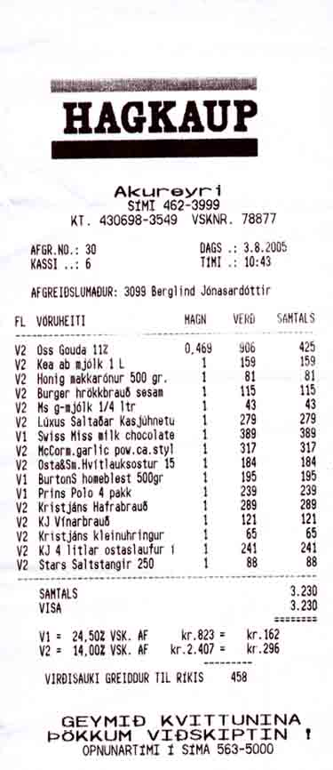 ich habe einen Kassenbon von Hagkaup-Akureyri mal eingescannt.
