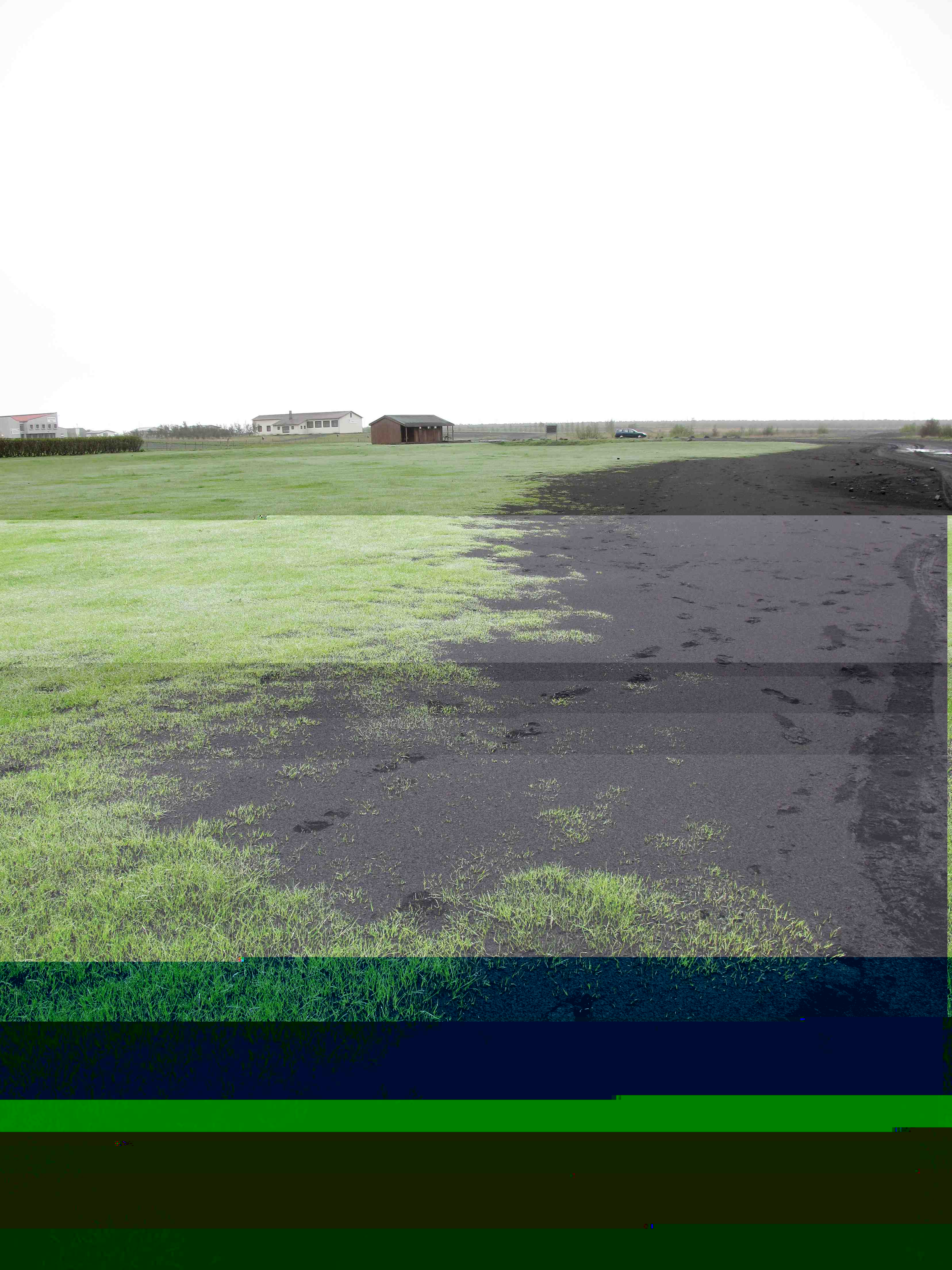 Am Skógafoss sah es am 20.5. so aus, ca, ein Drittel der Wiese lag unter der Asche, das Gras war aber bereits wieder dabei sich durchzukämpfen. (Überhaupt war das Gras dieses Frühjahr so grün wie sonst noch nie, die Asche scheint also ordentlich zu düngen): Zwei Tage vorher hatte es ordentlich Sand geregnet, da war ich ganz froh über meinen Mundschutz...