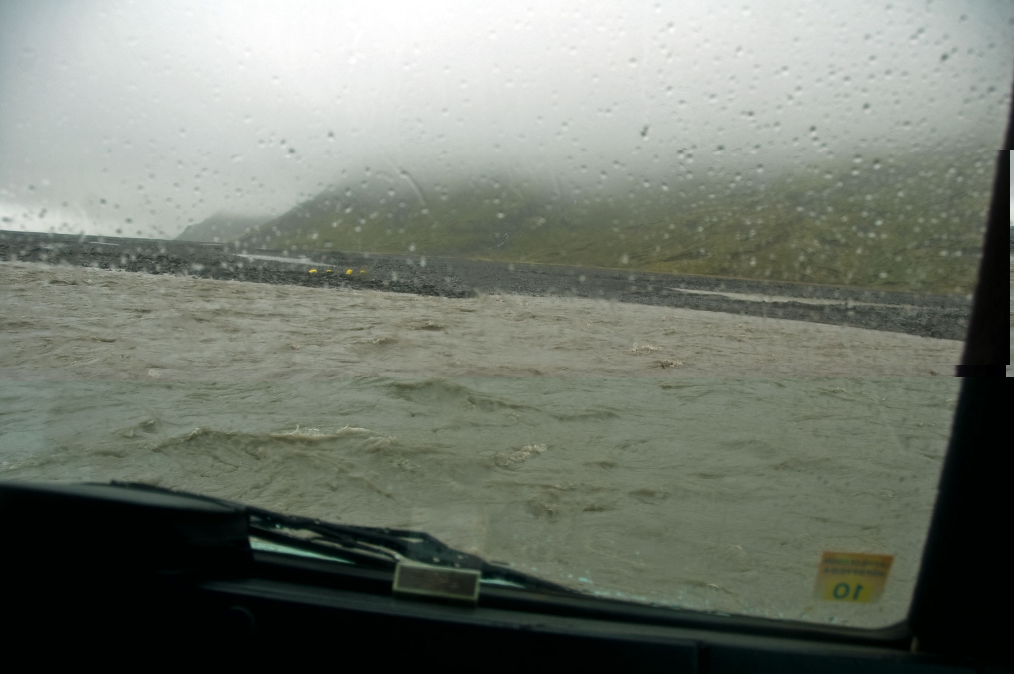 den selbst die erfahrenen Isländer nur mit Mühe durchfahren können. Da kann das Wasser schon mal das halbe Fenster bedecken.