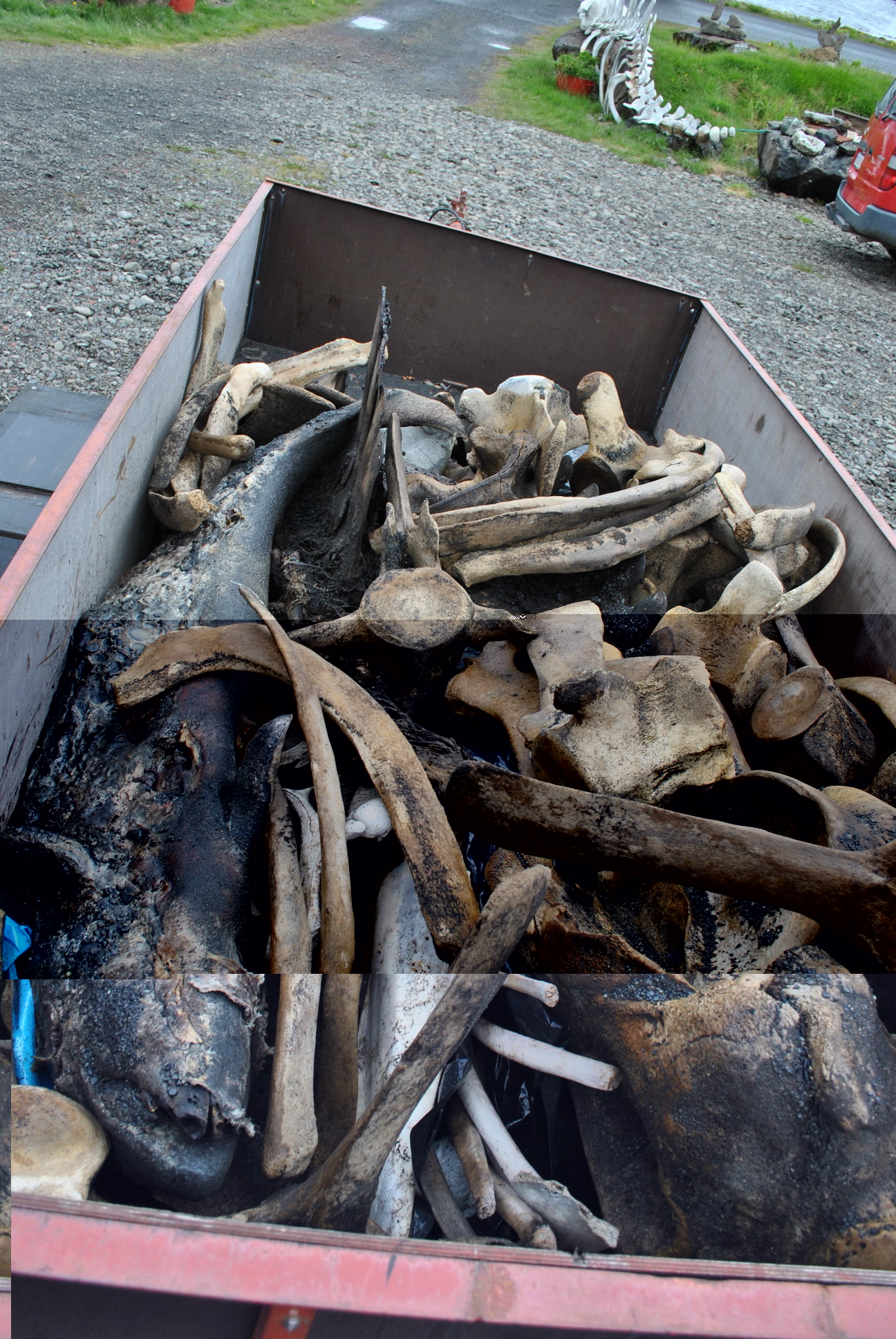 Er sammelt kleine verendete Wale und andere Säugetiere vom Strand,und Skelletiert diese für die Nachwelt.
