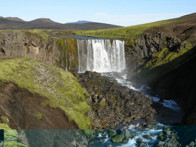 das ist ein Wasserfall des Markarfljóts. Du findest ihn wenn Du auf von der F210 bei Laufafell Richtung Hrafntinnusker abbiegst und dann nicht geradeaus ueber die Furt des Markarfljóts Richtung Hrafntinnusker faehrst sondern nach rechts (also nach Osten) wenige hunderte Meter flussabwaerts faehrst.