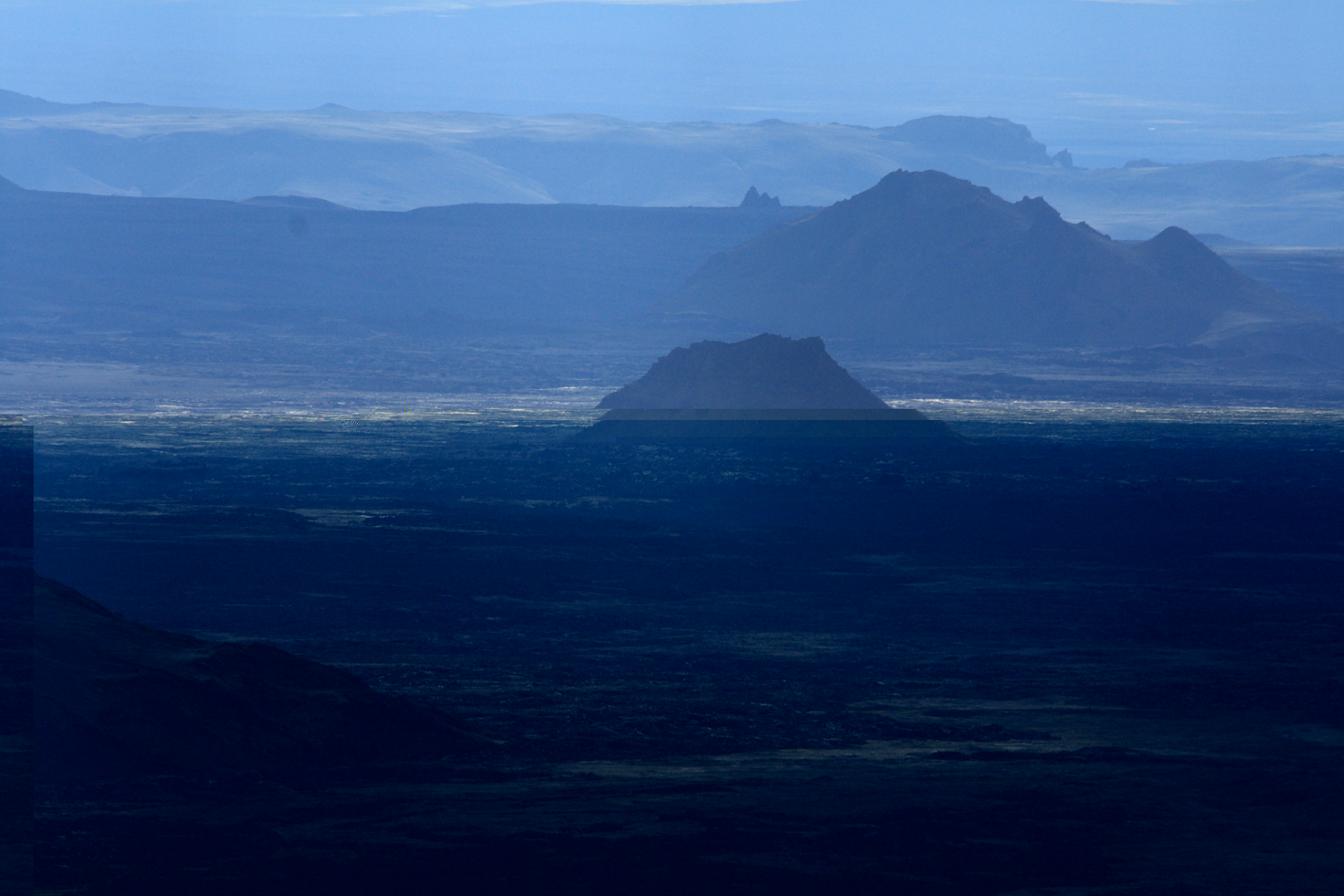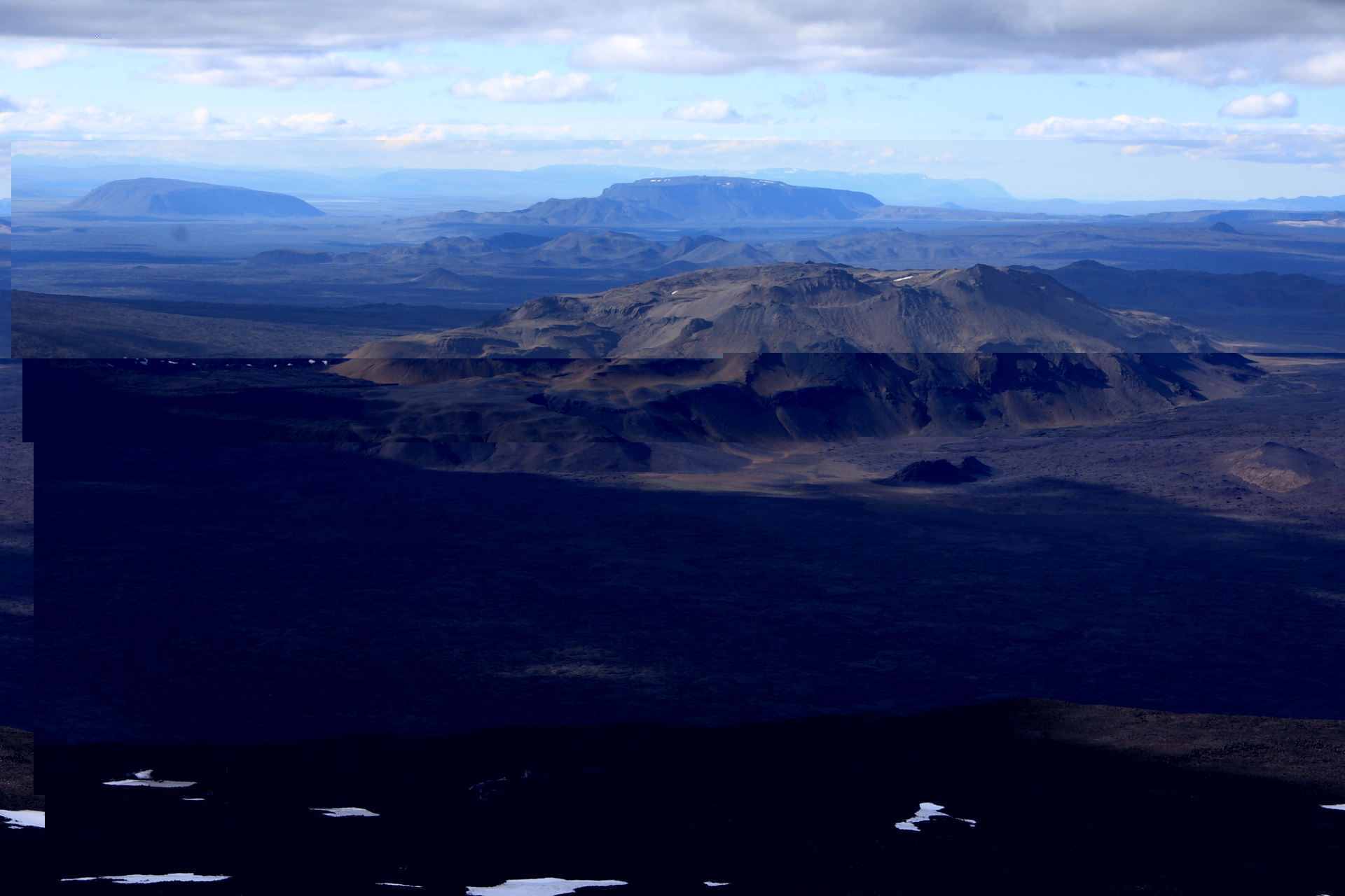 2013 war ich zwar nicht am Gipfel aber von einer früheren Besteigung kann ich ein paar Bilder vom Ausblick beisteuern. 2008 hatte ich das Wetterglück bei einer Biketour von Husavik bis in's Godaland auf meiner Seite