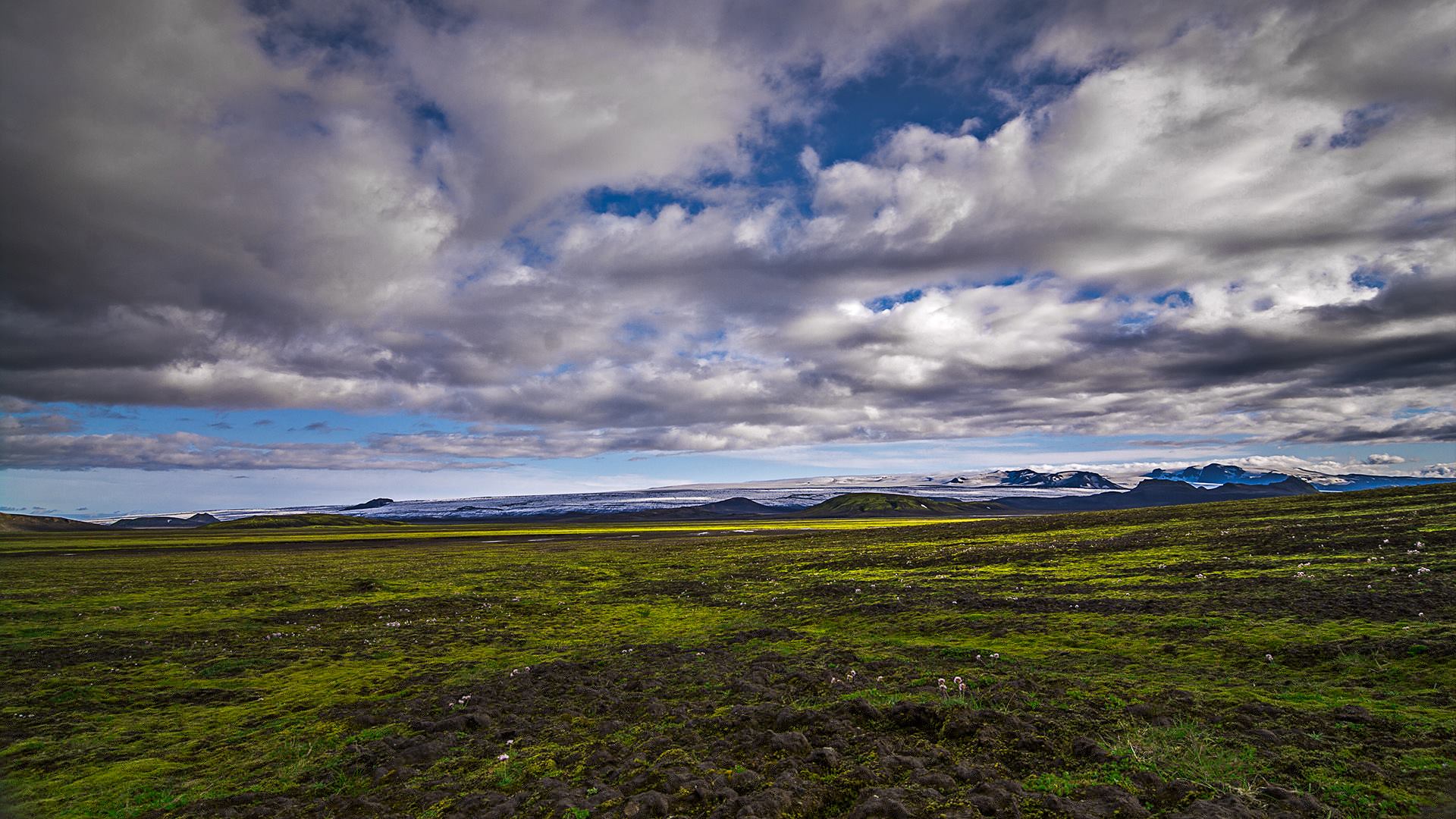 Sehr empfehlenswert ist zudem auch eine ausgedehnte Wanderung im Tal Kaldaklof, schöne weite leuchtend grüne Mooslandschaft und gegen den Torfajökull die bekannten farbenfrohen Rhyolitberge.
