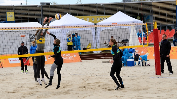 Da musst du mal genau hinschauen - die Bikini-Oberteile sind über dem Schwarz und die Unterteile stecken unter dem Schwarz . Des Rätsels Lösung - ach, man munkelt was von 4°C und 10 m/s Wind ... zumindest, als ich dort war ... ideale Beachvolleyballbedingungen also . Als die Damen sich einspielten, flockte es gar hin und wieder vom Himmel!