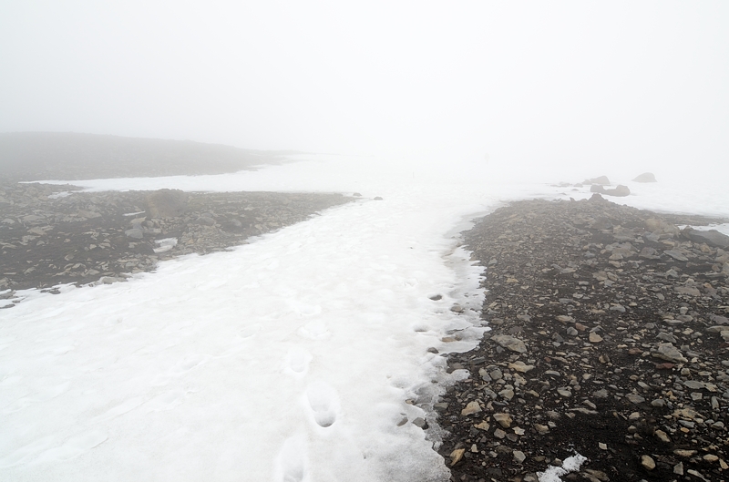 Der Aufstieg zur Herðubreið ist eigentlich nicht großartig schwierig, bis auf evtl. ein kleines Eisfeld im obersten Bereich zur Kante.