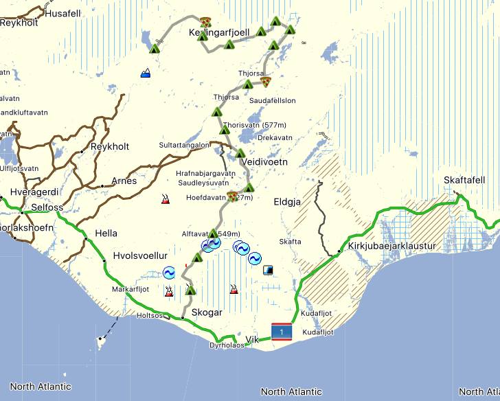 island hat viele wanderwege, und viele zelteplaetze die man ansteuern kann, wenige aber durchlaufen eine mehrtagestour, die bekannteste faengt im sueden an und geht 4-5 tage und heisst laugavegur, diesen nutzten wir als einstieg, hier war auch viel verkehr auf den wanderwegen (alle stunde mal nett grueßen) und abends sicher ein zeltplatz als unterkunft moeglich.