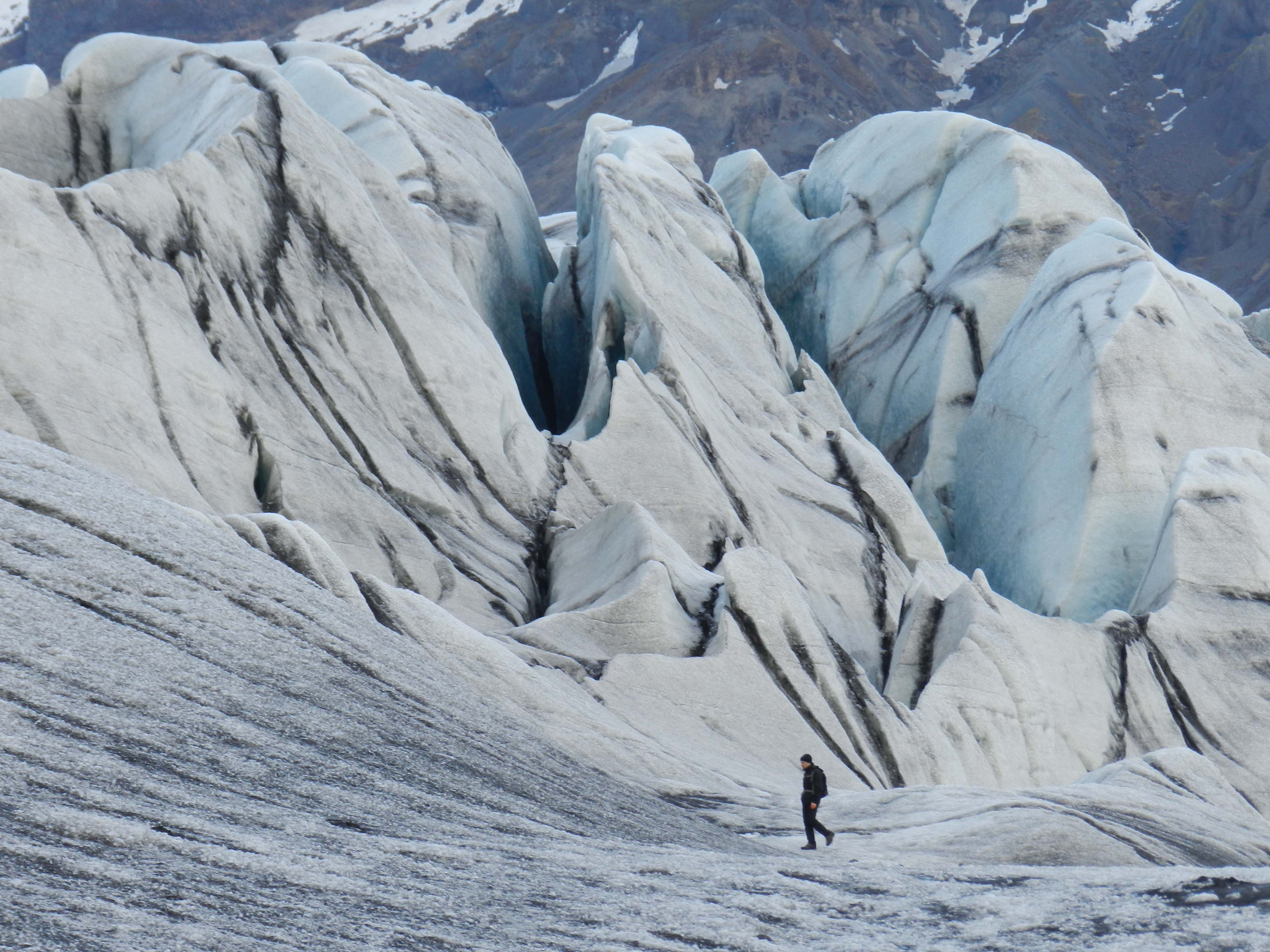 - Auch die Gletscher gewinnen an Kontrast. Durch den vielen Schneefall sind sie sprichwörtlich schneeweiß, so dass sich die eingelagerten Ascheschichten noch deutlicher dagegen abheben.