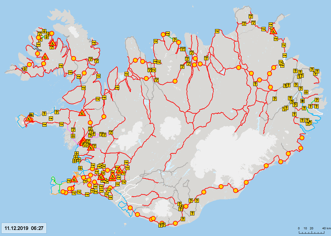 Die Reparaturarbeiten am Stromnetz dauern noch an. Es sind ja etliche Strommasten gebrochen, und zum Teil schneit es weiter, was für die Arbeiten auch niht so förderlich ist. In Dalvík sorgt das Küstenwachschiff für die Stromversorgung, damit auch die Heizungen wieder in Gang kommen.