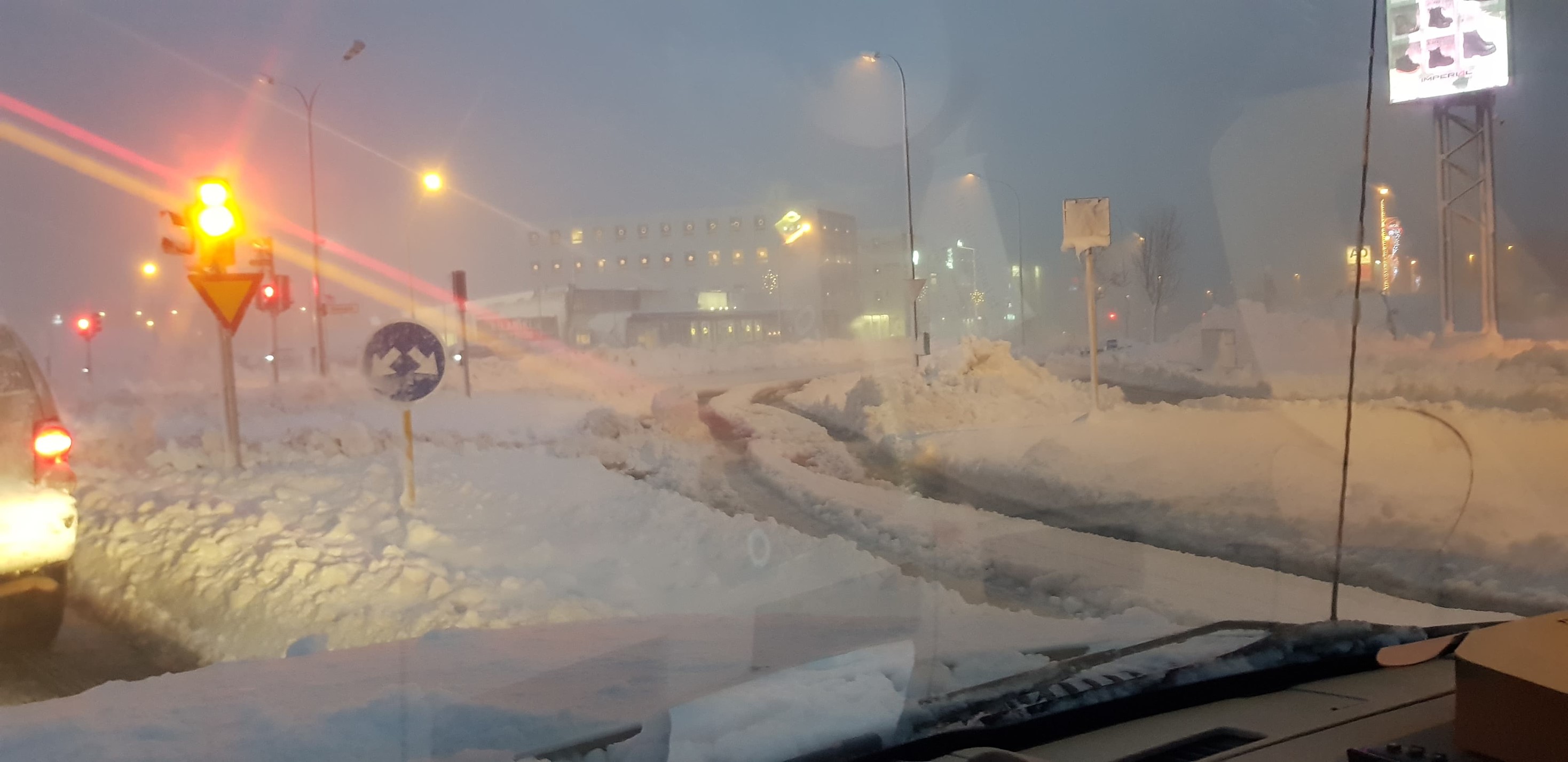 Das Foto hat gestern jemand auf FB gepostet, das ist die große Kreuzung vorm Einkaufszentrum. Es hieß nicht umsonst: Hauptstraßen für Jeeps befahrber, Nebenstraßen großteils blockiert. Man sollte zuhause bleiben.
