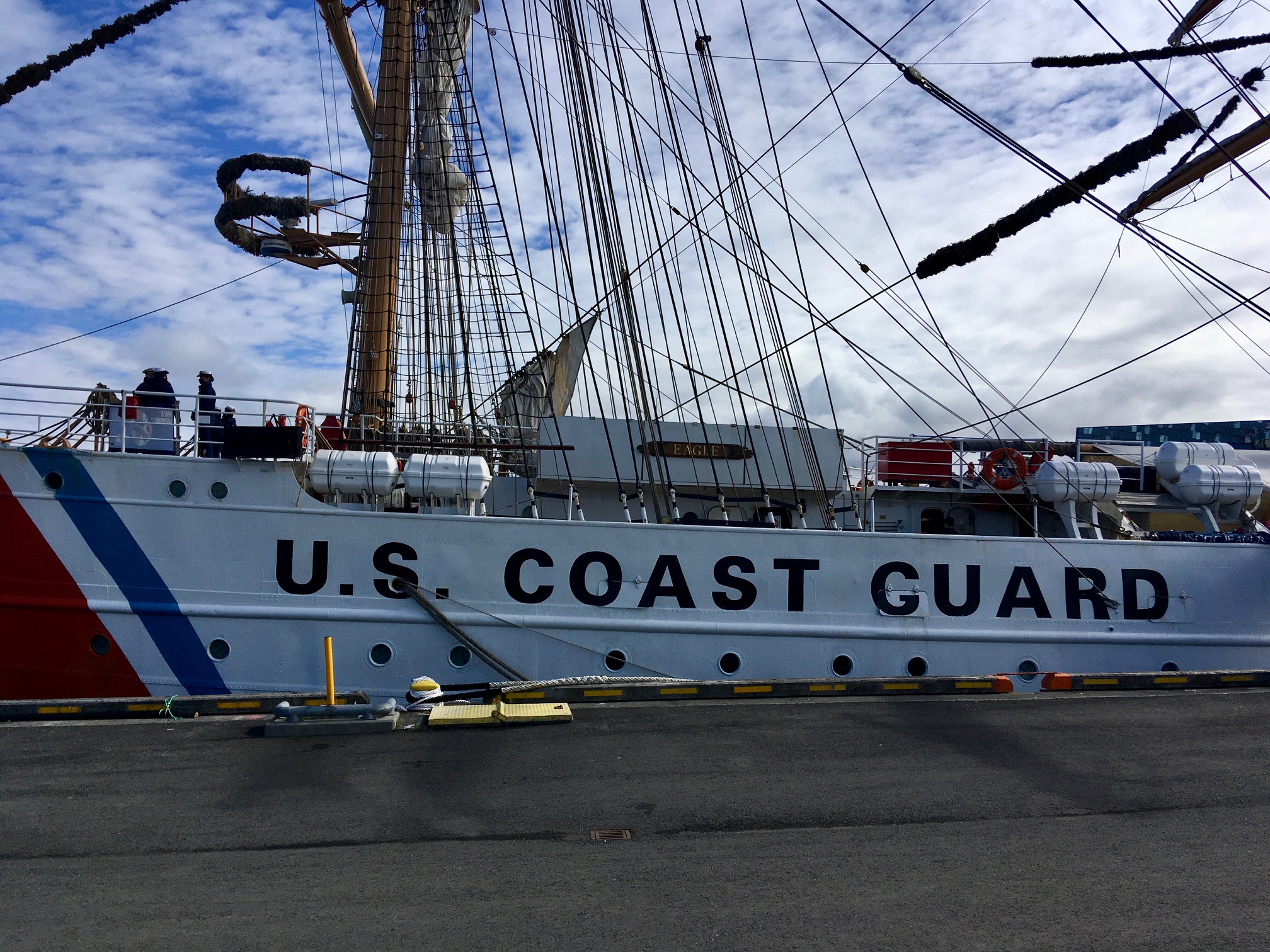 Heute habe ich meine erste "Outdoor Activity" beantragt und durfte mich zu meiner großen Überraschung 1 Stunde lang frei in der Stadt bewegen :). Also ab zum Wasser, einmal bis zum alten Hafen und zurück. Die US-Küstenwache ist gerade mit einem Segelschiff auf Trainingstrip vor Ort: