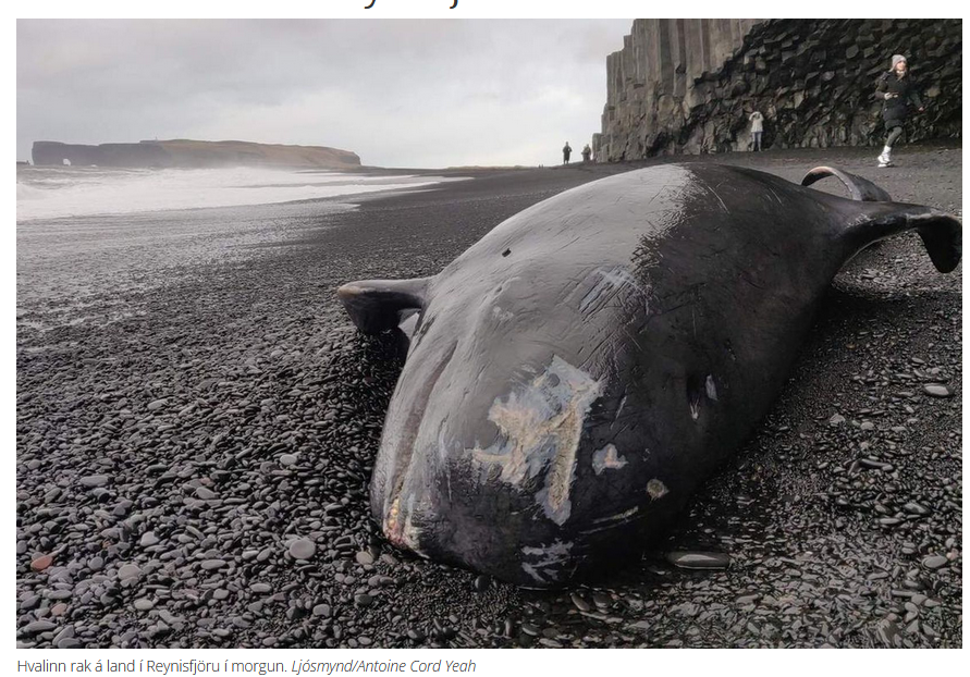 Am selben Strand ist dann heute ein Wal entdeckt worden. Leider nicht im Wasser, sondern tot am Strand: https://www.mbl.is/frettir/innlent/2021 ... ynisfjoru/.