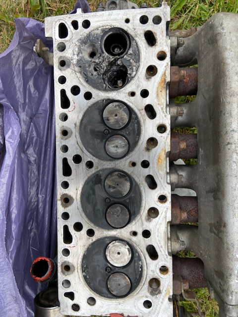 Der Kopf ist hin, komplett. Du brauchst einen Austauschmotor, komplett gemacht mit neuen Kolben, Lagern usw. Dann baust du alles um, Anbauteile usw und weiter geht's.
